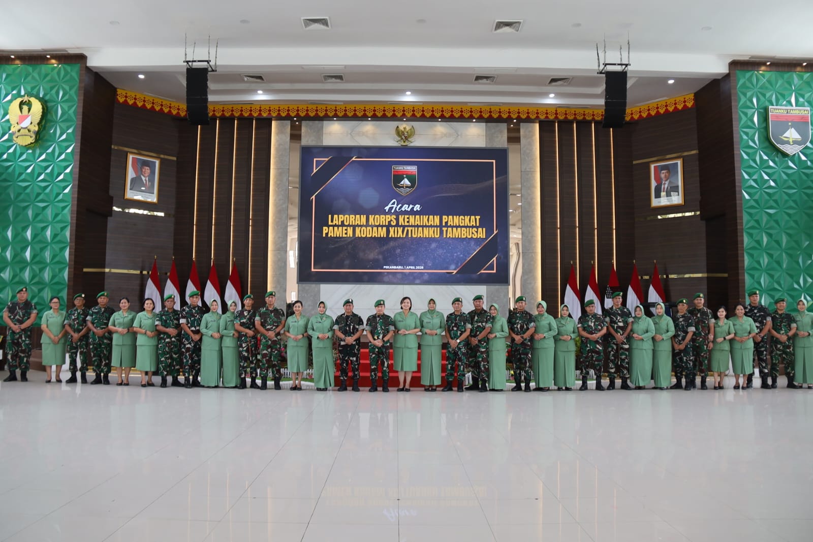 Secara keseluruhan, terdapat 52 Perwira Menengah Kodam XIX/Tuanku Tambusai yang memperoleh kenaikan pangkat terhitung mulai tanggal 1 April 2026, terdiri dari 3 Kolonel, 14 Letkol, dan 35 Mayor. Kenaikan pangkat tersebut merupakan bentuk penghargaan negara atas dedikasi, loyalitas, dan kinerja para perwira dalam pelaksanaan tugas serta pengabdian kepada bangsa dan negara.